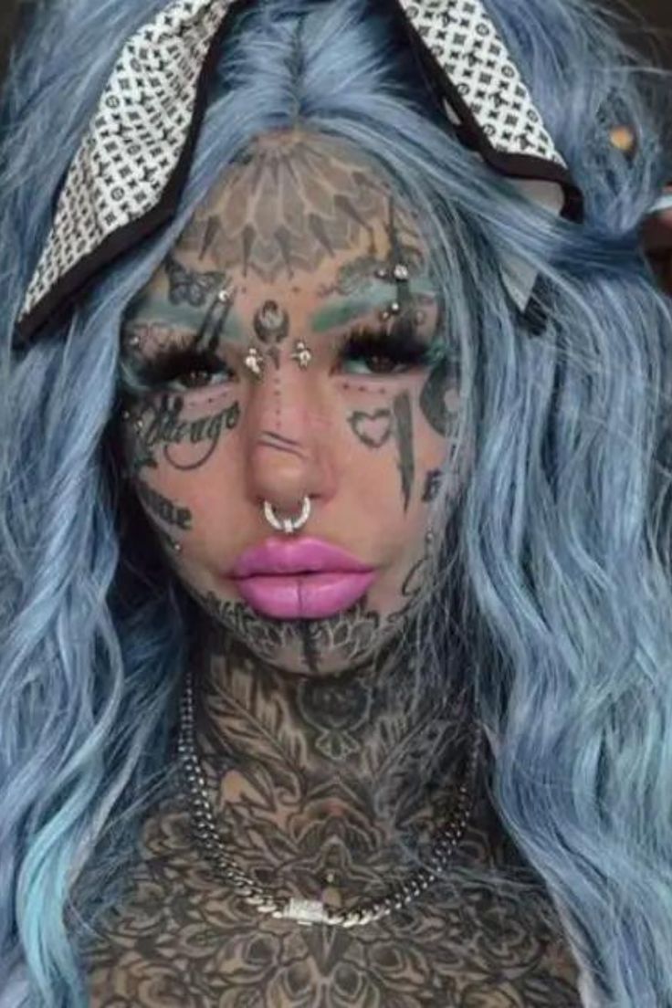 Su apariencia, que incluye más de 600 tatuajes, una lengua bifurcada y globos oculares tatuados, la ha llevado a ser apodada “Blue Eyes White Dragon”.